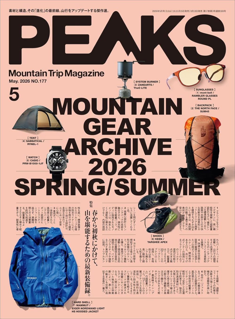 MEDIA メディア掲載情報 2026.03.13CLAYMORE PEAKS 5月号 PEAKSの5月号に製品を掲載いただきました。 特集「MOUNTAIN GEAR ARCHIVE 2026 SPRING / SUMMER」にて、”ULTRA MINI”と”HEADY+”が紹介されています。